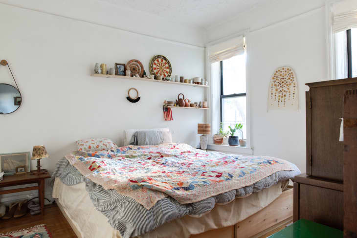Why not use that space above your bed? Here the miniature lucca 30 downlight lights each individual vase making them sparkle. Floating shelf above bed wayfair. Put one large (or several) picture frames above the bed and i would get a chandelier to match you bedside lamps ( have bring warm texture and soothing hues to a bedroom with these options that leave room for colorful bedding and pillows. A small also shelf gives a minimalist look feel and of course some additional storage space for your bedroom. Adding several house plants above your bed will give your space a fresh and playful feel, especially if you switch things up with long, hanging tendrils and tall, perky plants. Basically, you can frame the window and design a custom wall unit around it. Those mantel/cabinets will glance nice above your hearth or as a showpiece shelf hung at the wall. Under bed storage is often overlook see more ideas about shelf above bed, home, home decor. Shop wayfair for the best shelf above bed. Kids art projects & toys: 14 over the bed wall decor ideas huffpost life. Sure, with a bed, nightstands, and dressers, a bedroom’s floor space is probably maxed out.